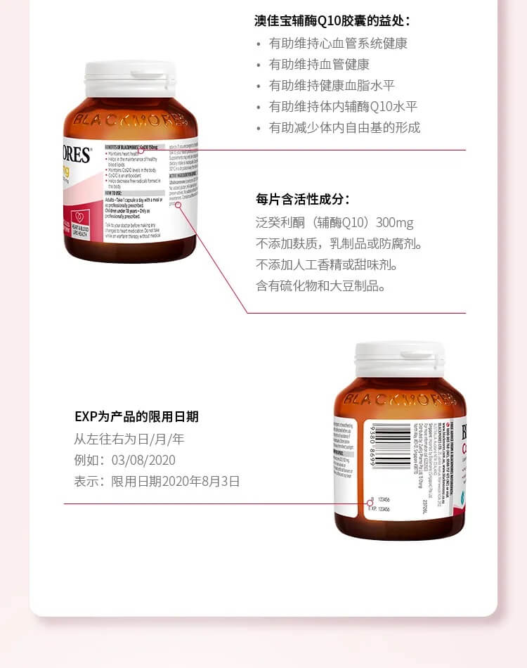 blackmores澳佳宝300mg辅酶超级Q10胶囊60粒-保质期2028年6月