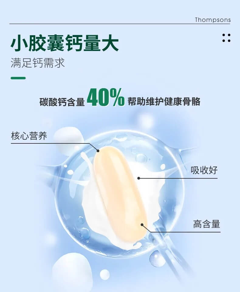 Thompson`s汤普森天然液体钙胶囊60粒-保质期2027年02月