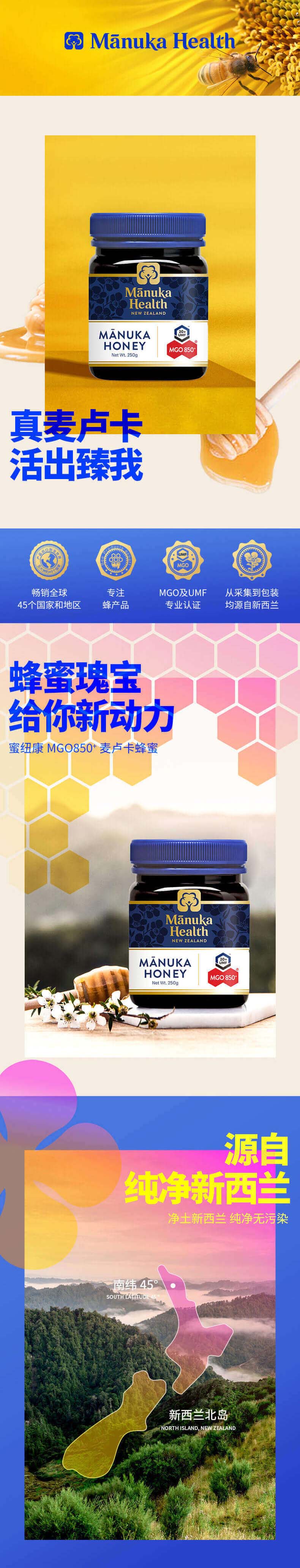 Manuka health蜜纽康MGO 850+麦卢卡蜂蜜250g-保质期2028年4月