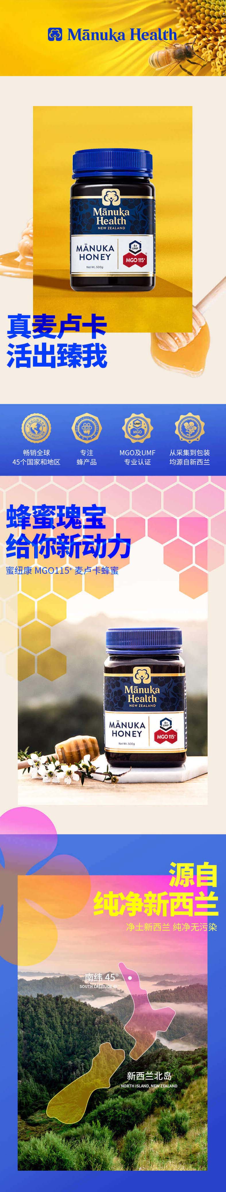Manuka Health蜜纽康MGO115+麦卢卡蜂蜜 500g-保质期2028年12月