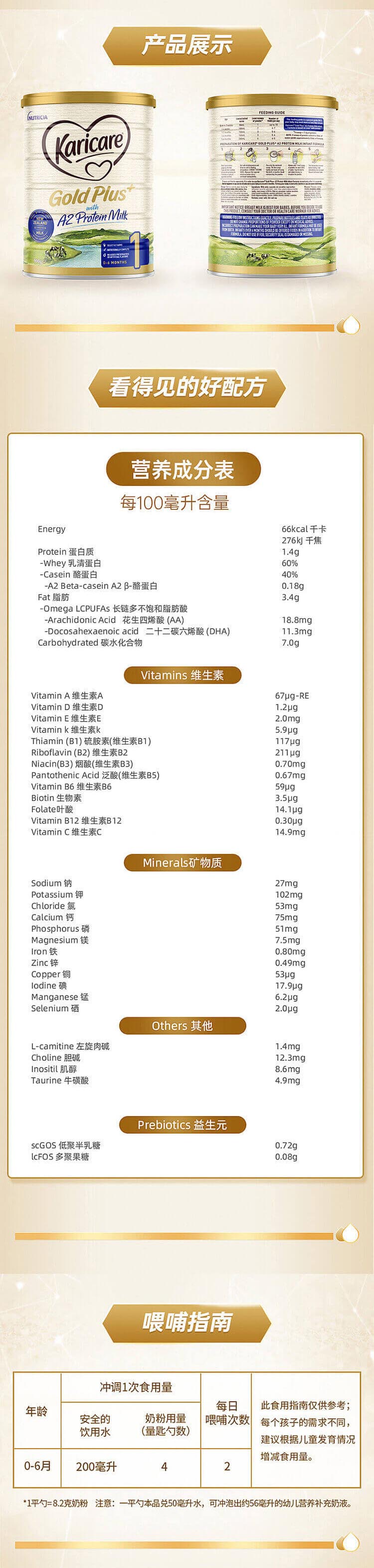【新西兰顺丰直邮快线】Karicare 可瑞康金装A2-1段(0-6个月)3罐 保质期2027年7月