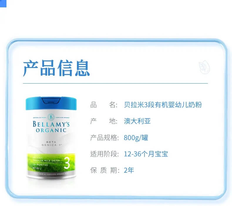 【新西兰直邮BC清关快线】Bellamy's 贝拉米有机A2白金3段(1-3岁)800g*6罐 保质期2027年6月