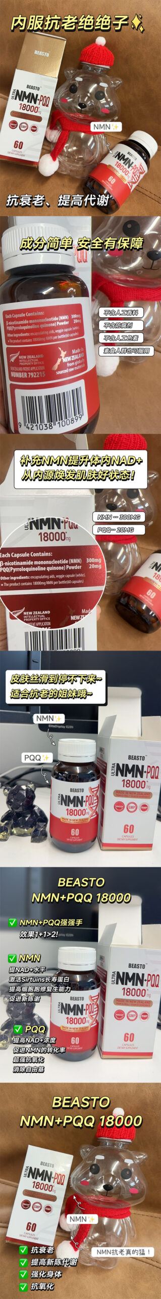 BEASTO NMN+PQQ 18000含量基因能量抗衰老胶囊60粒-保质期2028年4月