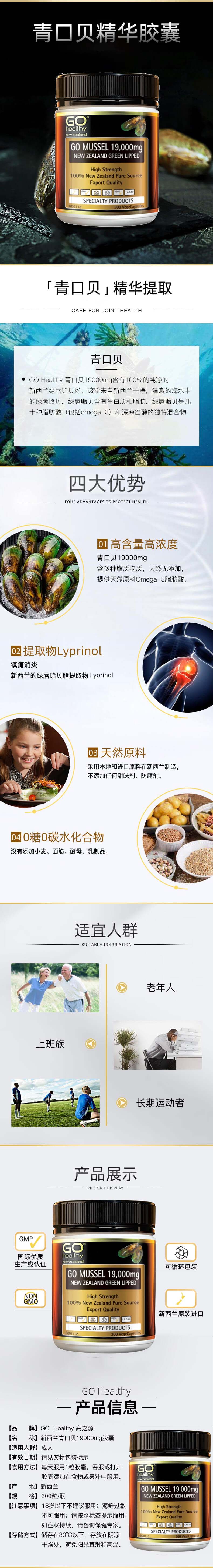 Go Healthy 高之源 青口精华关节保护胶囊 19000mg 300粒-保质期2027年9月