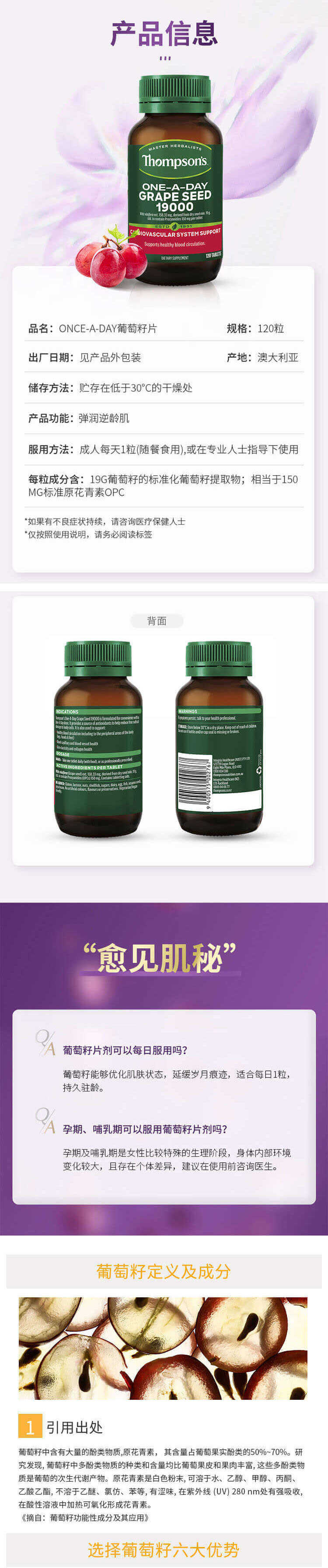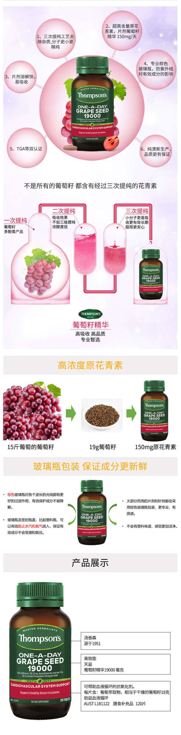 Thompson’s 汤普森 葡萄籽精华19000mg 120片-保质期2026年4月