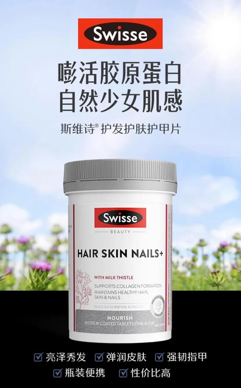 Swisse斯维诗护发护肤护甲胶原蛋白片 100片-保质期2027年2月