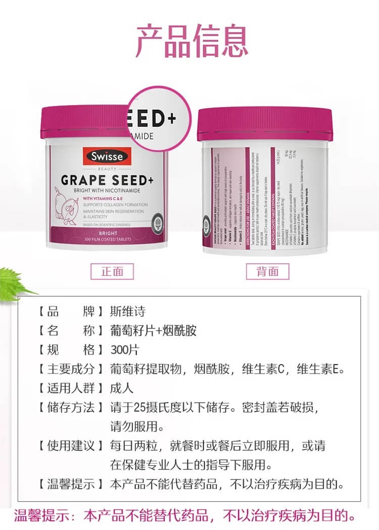 Swisse 斯维诗烟酰胺葡萄籽 plus 300粒