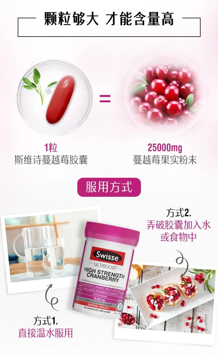 Swisse斯维诗高浓度蔓越莓 25000mg 胶囊30粒-保质期2026年5月