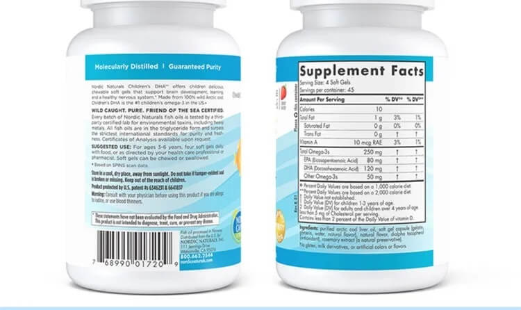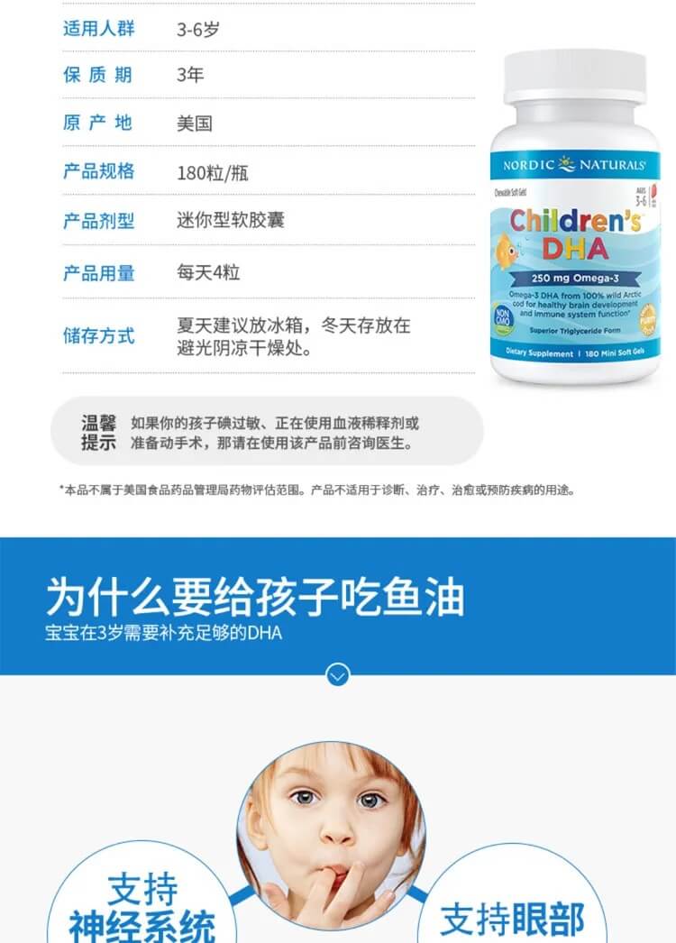 Nordic Naturals 挪威小鱼 3-6岁小金豆儿童DHA鳕鱼鱼油软胶囊 180粒-保质期2028年2月