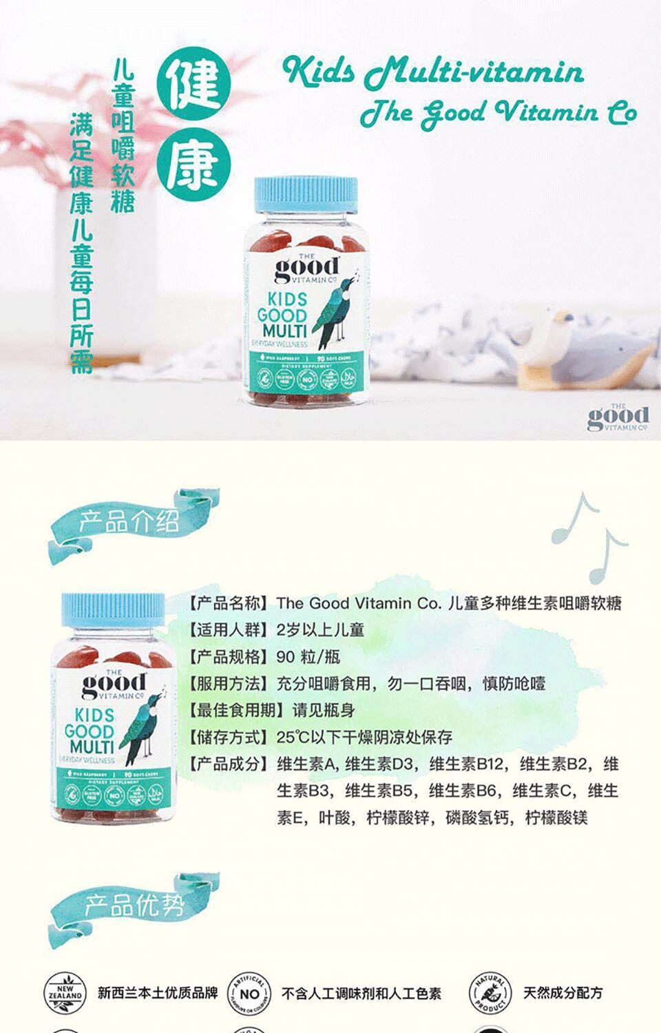 【融化不赔】The Good Vitamin Co 儿童多种维生素软糖 覆盆子味 90粒