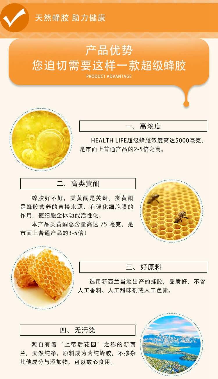 HEALTH LIFE海斯康宝超级蜂胶5000毫克 60粒-保质期2026年9月