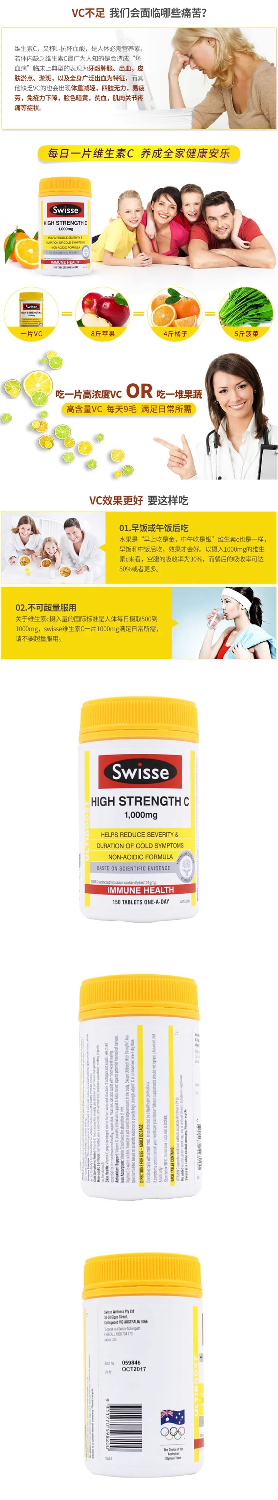 Swisse 斯维诗高含量维生素C 150粒-保质期2026年7月