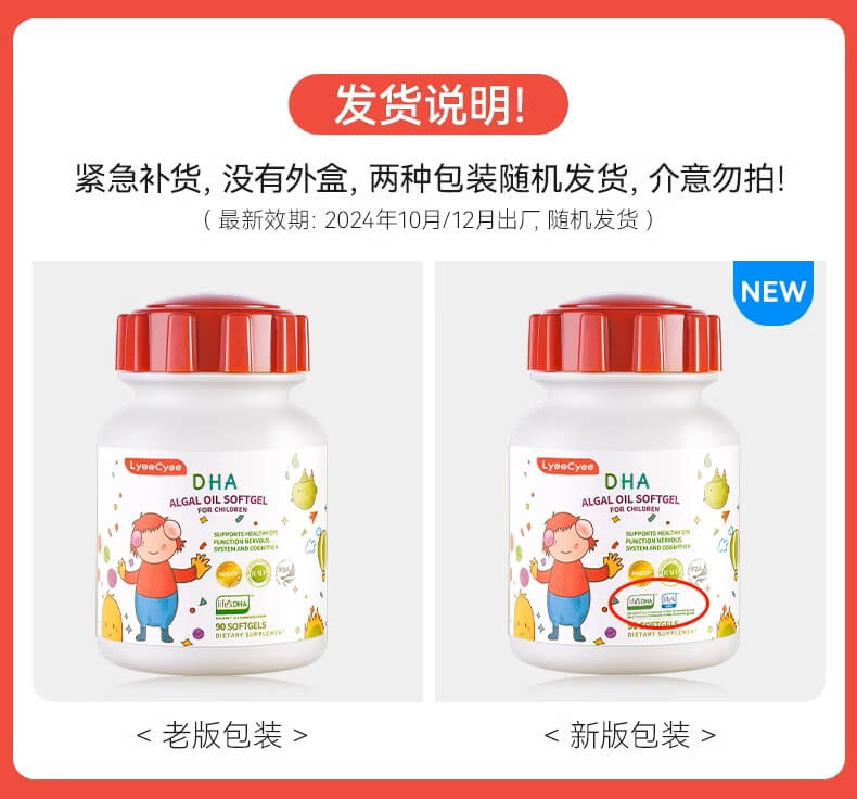 LyeeCyee丽施小红帽DHA婴幼儿儿童藻油软胶囊ARA90粒-保质期2027年12月