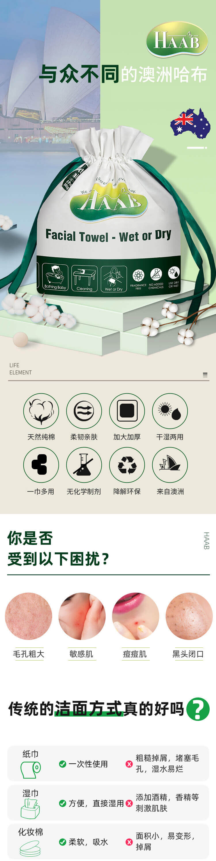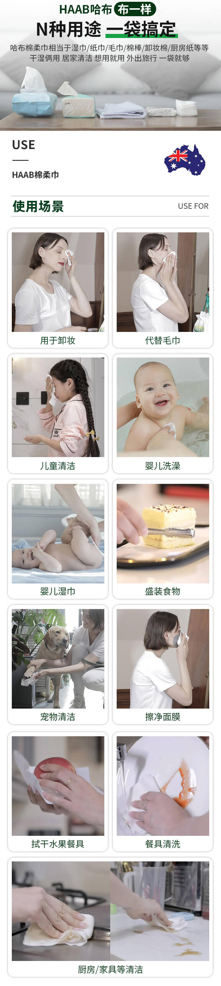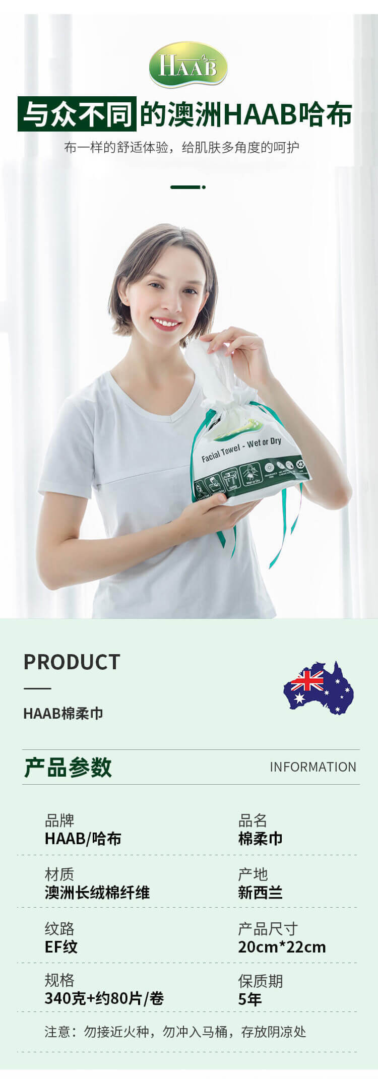 HAAB 哈布长绒绵洗脸巾80片-保质期2029年9月