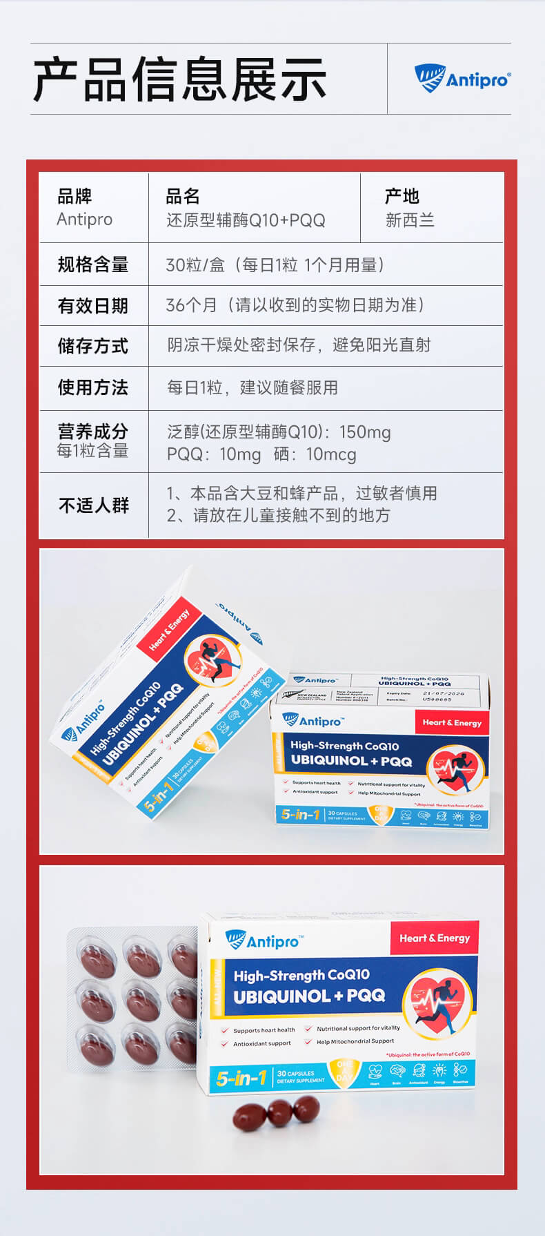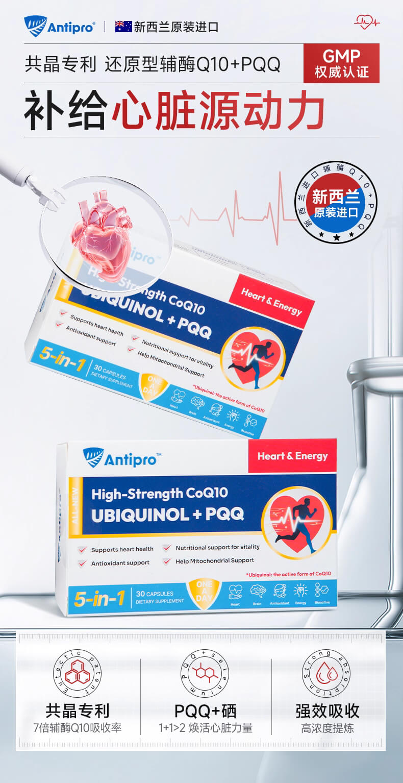AntiPRO还原型泛醇辅酶+PQQ+硒 30粒-保质期2028年7月