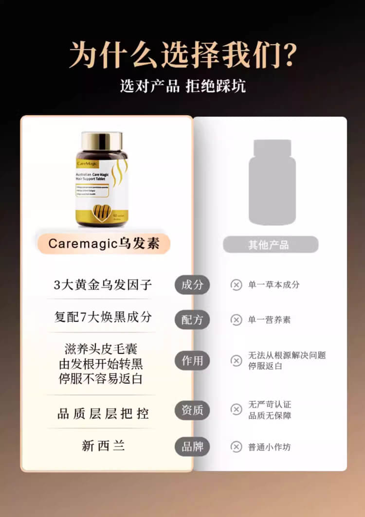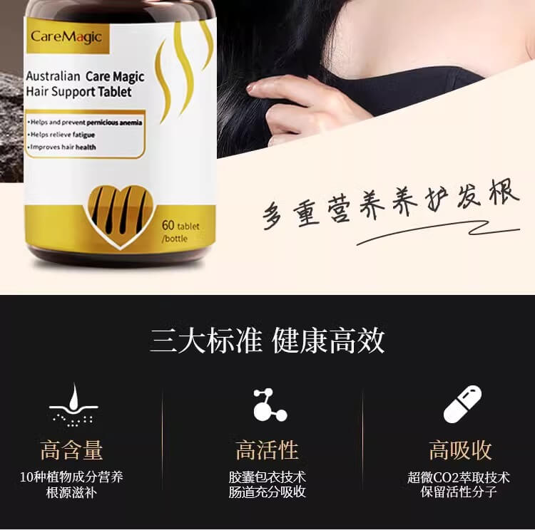 CareMagic生发黑发乌发生物素60片-保质期2027年9月