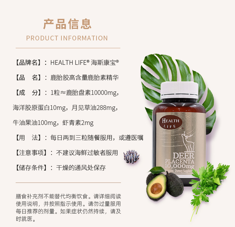 HEALTH LIFE海斯康宝鹿胎胶原养肌驻颜丸 90粒-保质期2027年12月