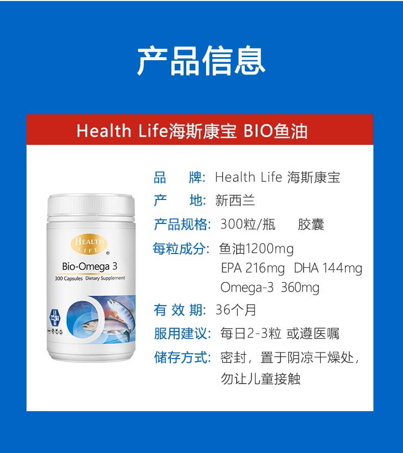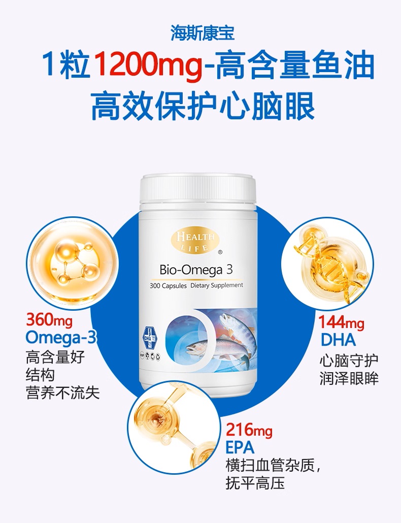 HEALTH LIFE海斯康宝Bio深海鱼油300粒-保质期2028年2月