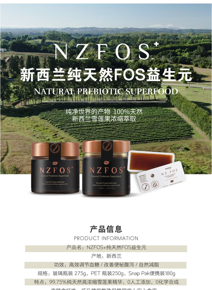 NZFOS+ 雪莲果纯天然黄金双歧因子果浆 80°Brix 250克