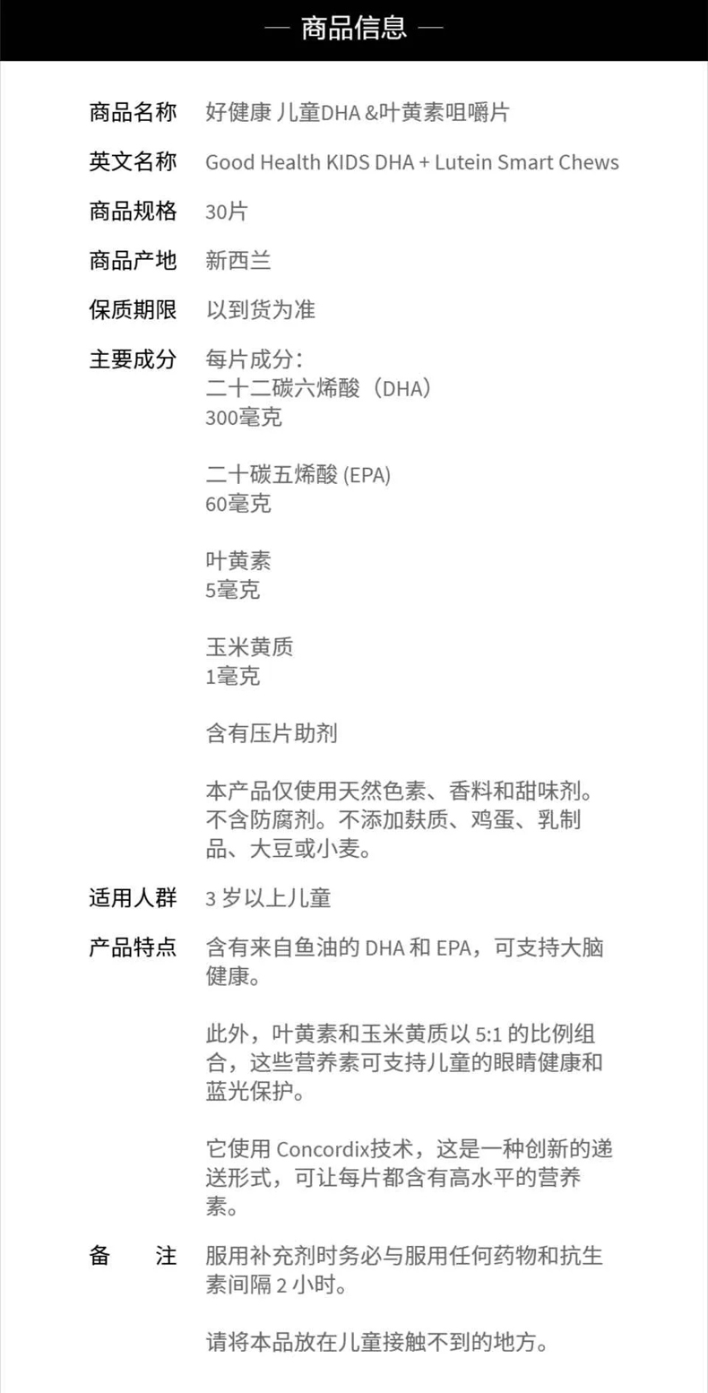 Good Health好健康儿童DHA&叶黄素咀嚼片 30粒