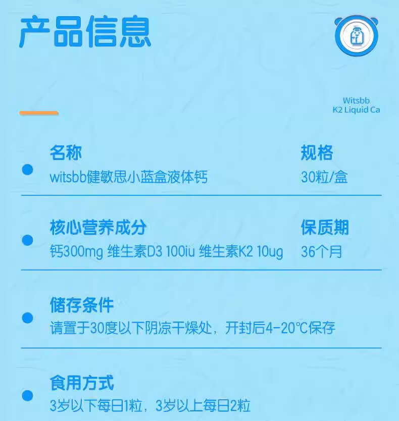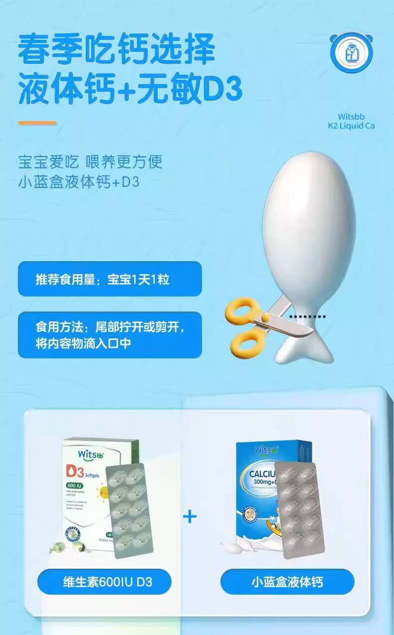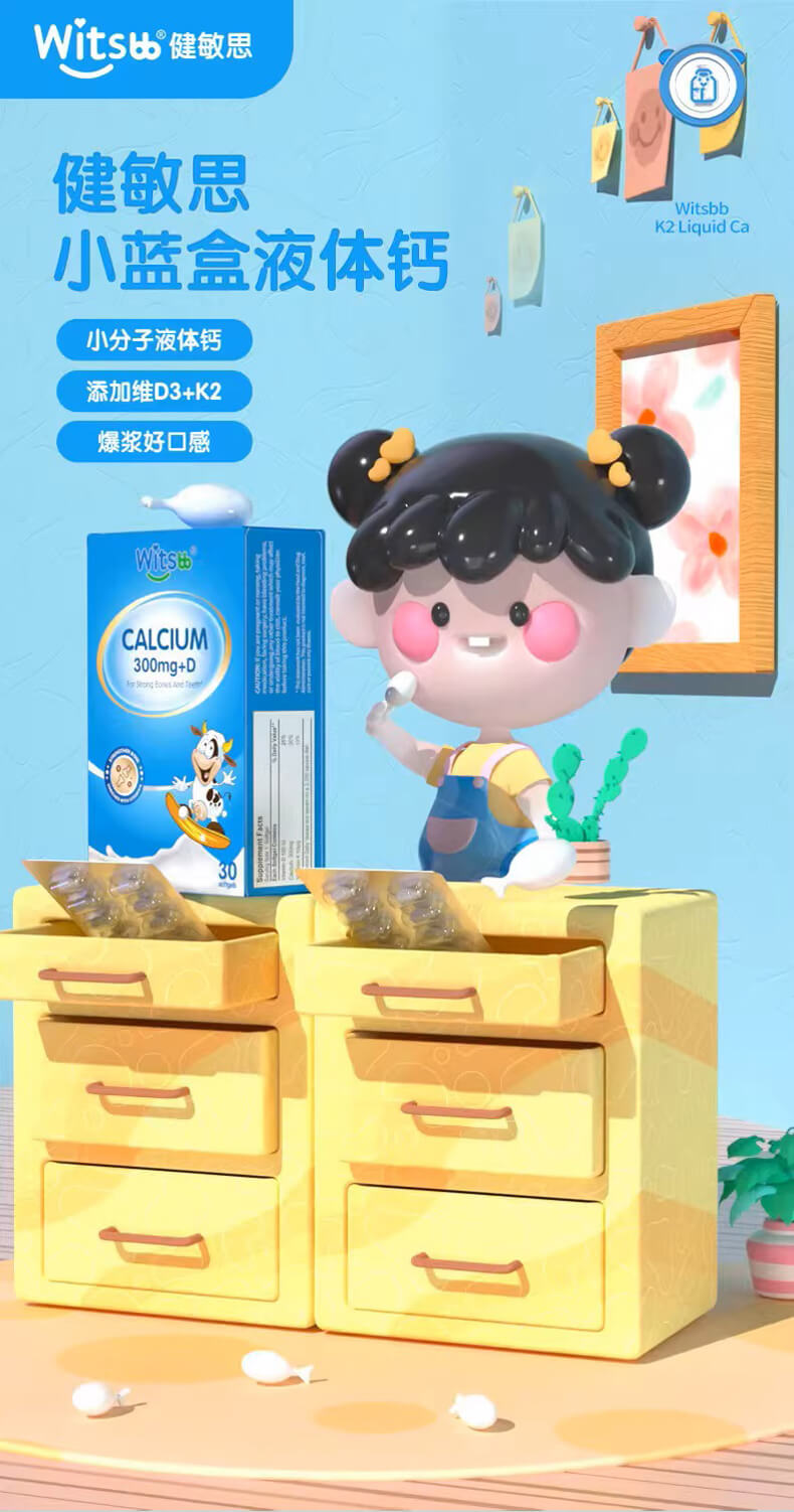 wistbb健敏思小蓝盒液体钙宝宝儿童补钙d3高含量软胶囊30粒
